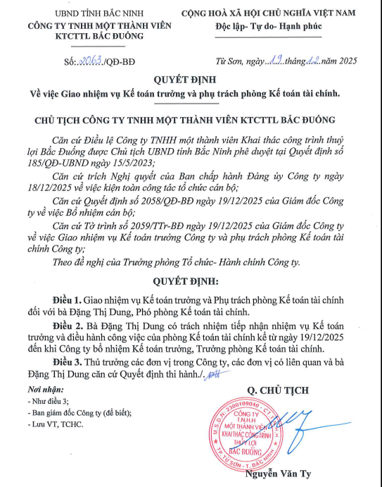 Công ty TNHH một thành viên Khai thác công trình thủy lợi Bắc Đuống báo cáo nội dung công bố thông tin doanh nghiệp theo quy định gồm những phần sau: